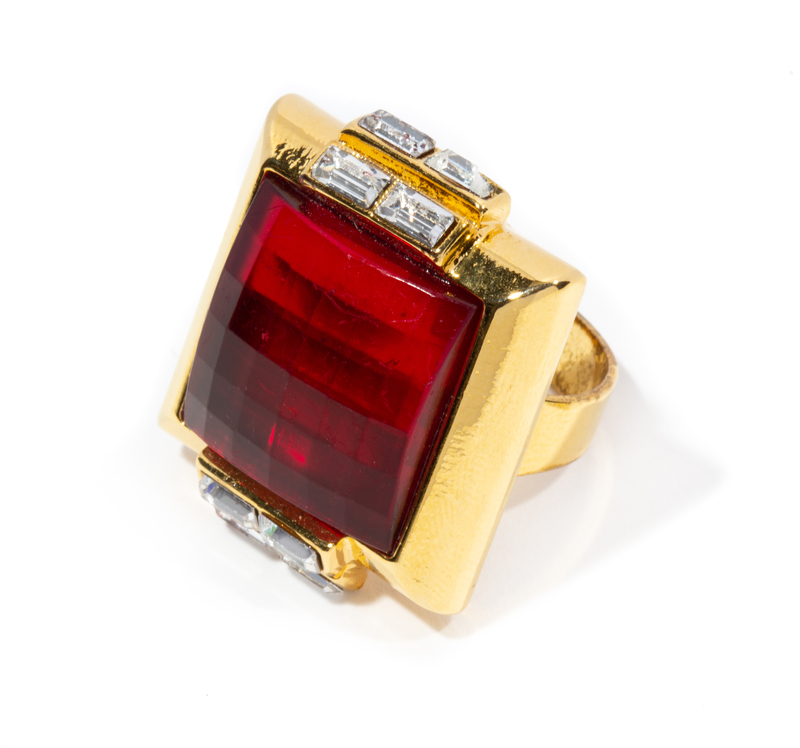 1990s, goldtone with decorative rhinestone baguette accents at the sides.Stamped: Gianni Versace.
