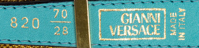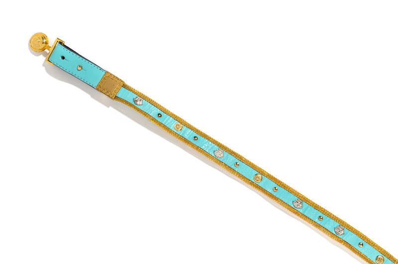 A Gianni Versace Turquoise Leather and Mesh Narrow Belt,