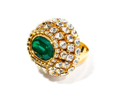 1990s,goldtone with a center oval green faceted stone.Stamped: Gianni Versace.
