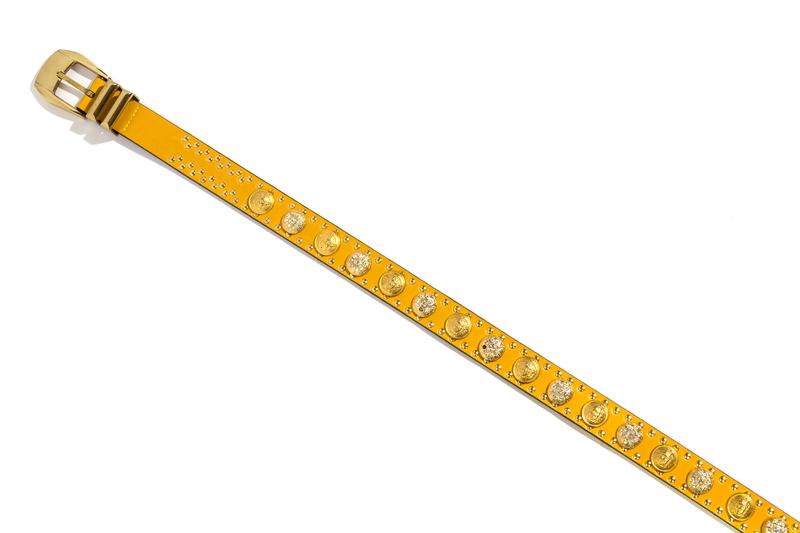 A Gianni Versace Yellow Leather Belt with Rhinestone Medallions,