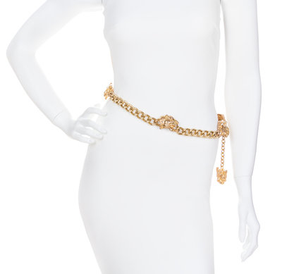 1990s,goldtone with various large cat heads and an adjustable hook closure.Stamped: Gianni Versace.