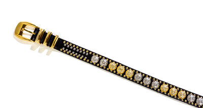 A Gianni Versace Black Leather Rhinestone Medallion Narrow Belt,