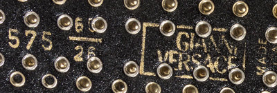 Spring/Summer 1992,with decorative goldtone and silvertone grommets and a goldtone buckle.Design featured on Cindy Crawford on the Spring 1992 Milan runway (Look 42).Stamped: Gianni Versace.