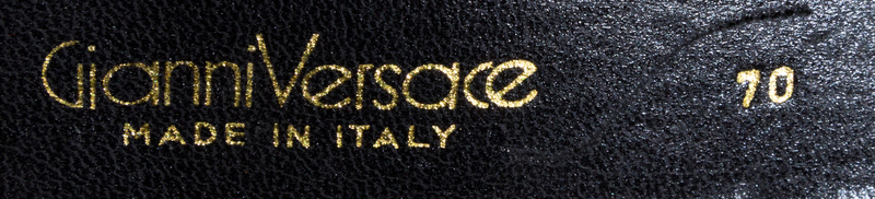 Late 1980s,with a decorative goldtone and red rhinestone embellished buckle.Stamped: Gianni Versace.