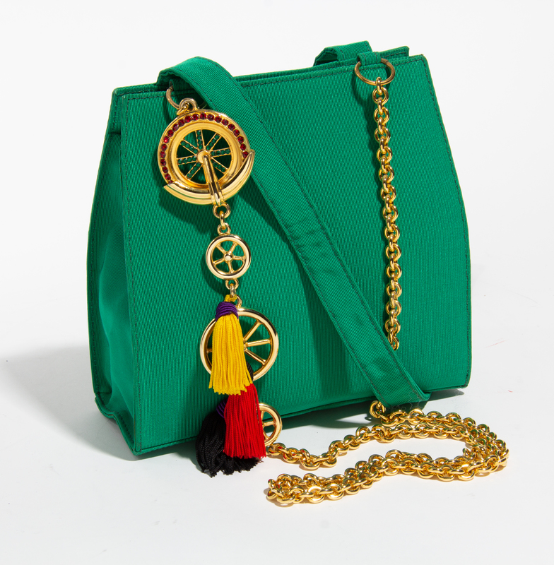 1990s,with one silk strap and one goldtone link strap with decorative wheel and tassel embellishment, a top interior snap closure and one interior slip pocket. Together with a dustbag.Stamped: Gianni Versace Couture.