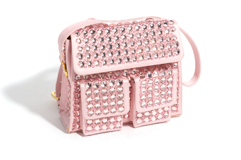 A Gianni Versace Pink Silk and Rhinestone Backpack,