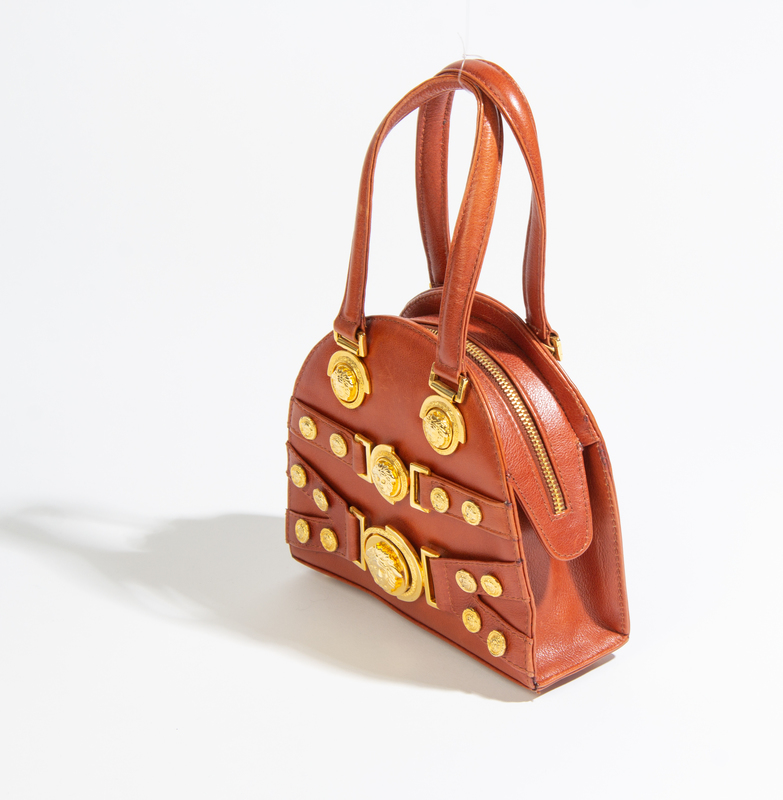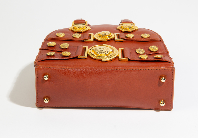A Gianni Versace Brown Leather Mini Medusa Handbag,