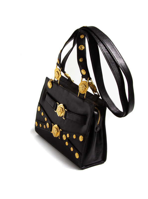 Autumn/Winter 1992-1993,with goldtone hardware, dual flat shoulder straps, decorative Medusa medallions, a top zip closure and one interior zip pocket.Design featured in the Fall 1992 ad campaign.Stamped: Gianni Versace Couture.