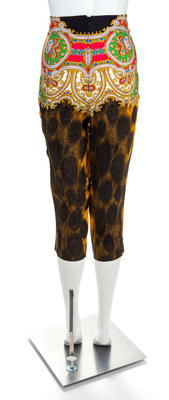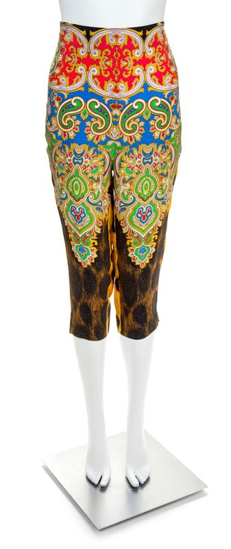 Spring/Summer 1992,with a paisley and animal print and a front zip closure. Labeled: Gianni Versace Couture.