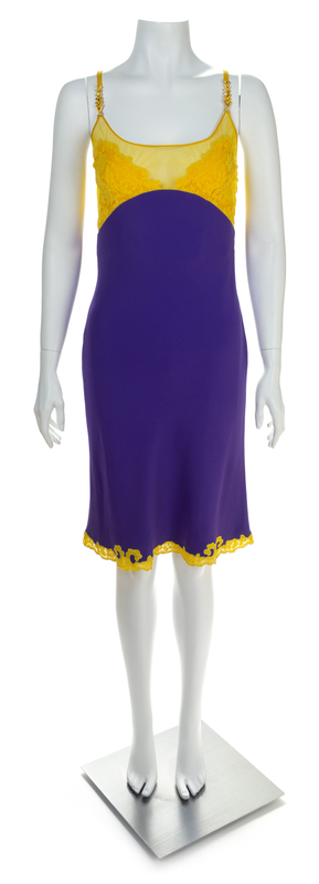 A Gianni Versace Purple and Yellow Lace Slip Dress,