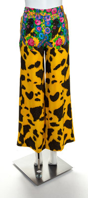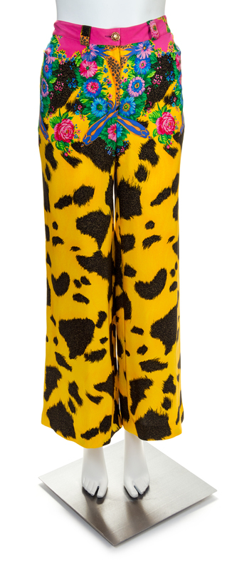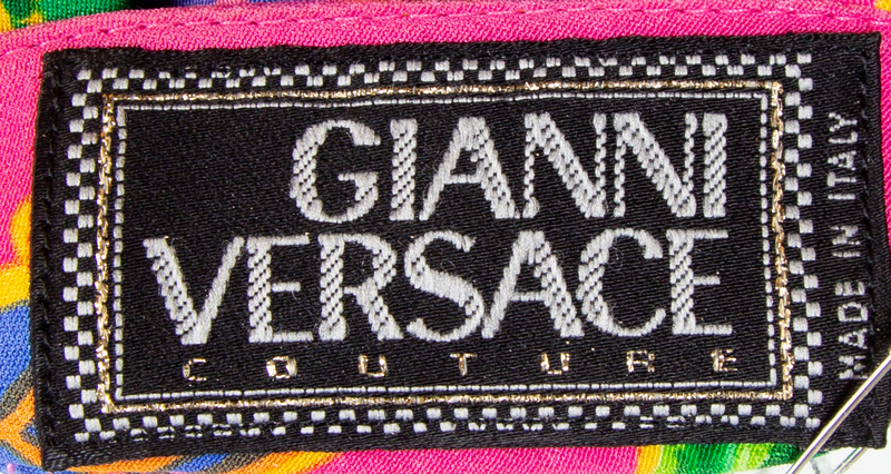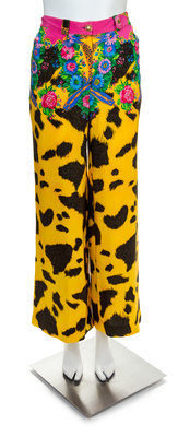 Spring/Summer 1992,with a floral and animal print, a fitted waist with a decorative goldtone Medusa button and a zip closure and front patch pockets.Labeled: Gianni Versace Couture.