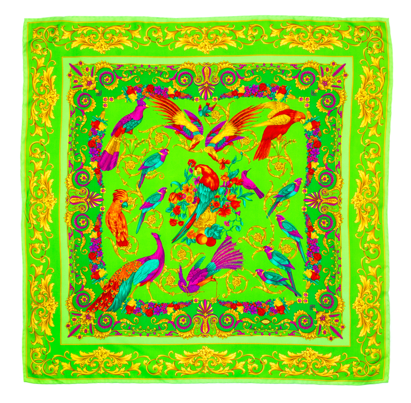 1990s,with a baroque and bird motif.Labeled within the print: Atelier Versace.