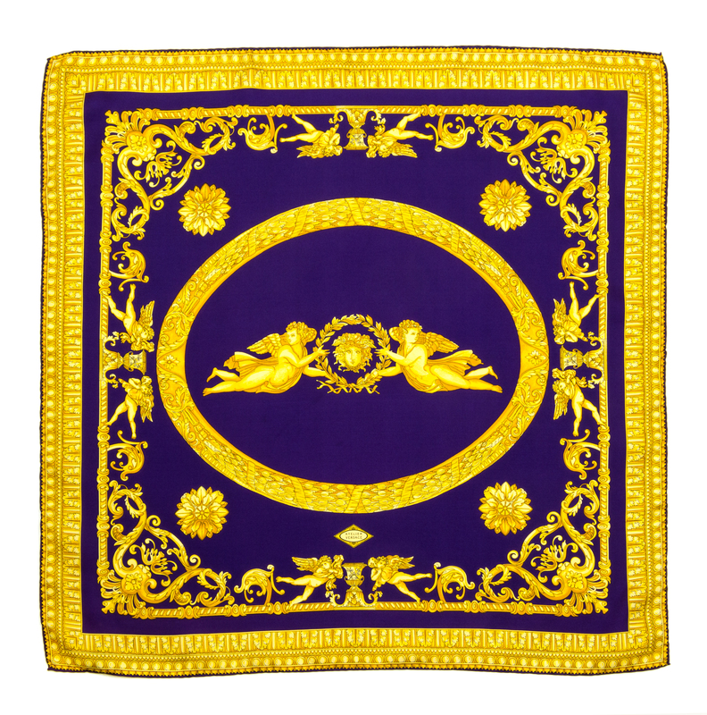 A Gianni Versace Purple Silk Atelier Print Scarf,