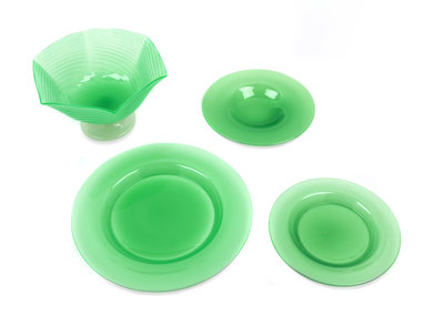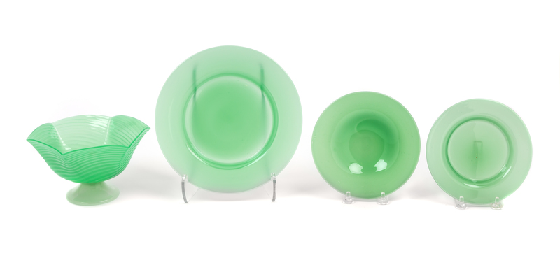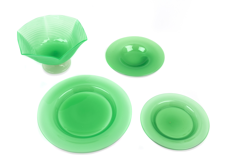 A Group of Four Green Steuben Objects