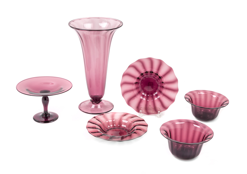 A Group of Six Steuben Amethyst Tableware Objects