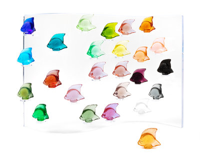 comprising 25 colored fish, stand and a book on Lalique.