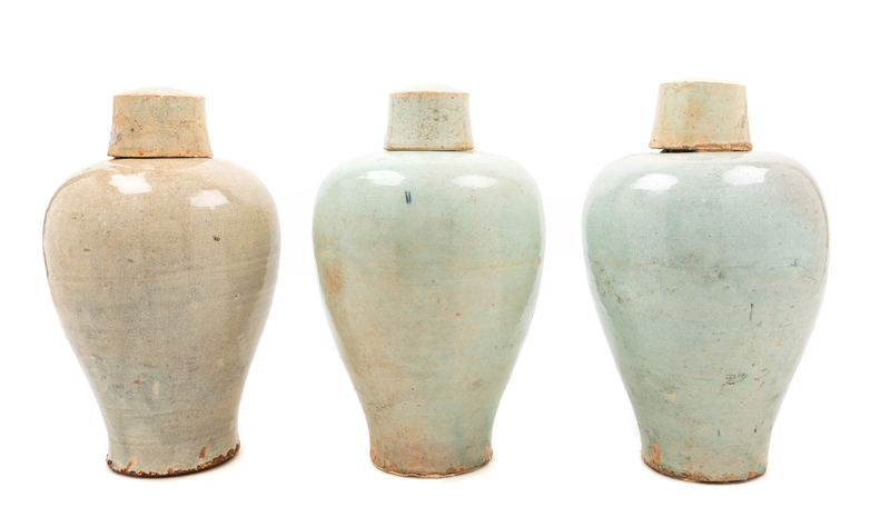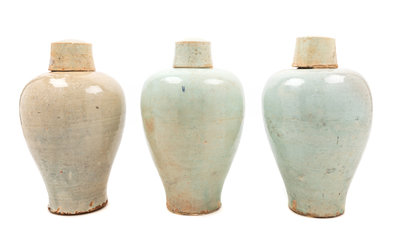 Three Qingbai Glazed Porcelain Covered Vases