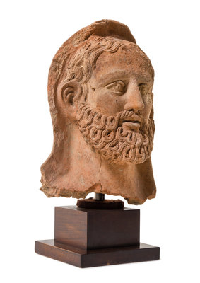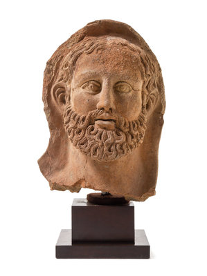 An Etruscan Terra Cotta Votive Head of a Bearded Man