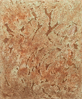 cotton, acrylic and gold with oxidation and matter on canvas