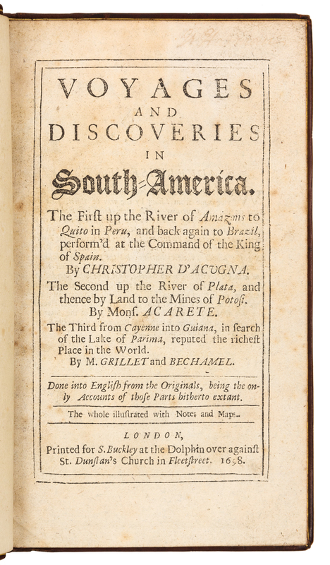 ACUA, Cristbal de (1597-1676?). Voyages and Discoveries in South-America. London: for S. Buckley, 1698.