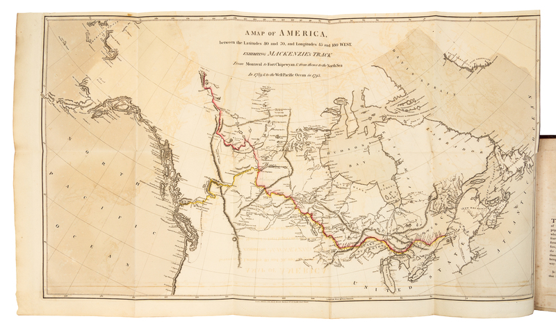 MACKENZIE, Alexander, Sir (1764-1820). Voyages from Montreal, on the River St. Laurence, through the Continent of America, to the Frozen and Pacific Oceans, in the Years 1789 and 179. London: T. Cadell & W. Davies, 1801.