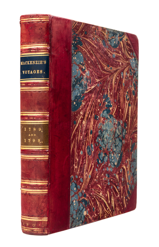 4to (279 x 20 mm). Engraved portrait frontispiece, 3 engraved folding maps. (Slight spotting and browning, map with some minor offsetting.) Later half calf, marbled boards (rebacked, slightly rubbed). FIRST EDITION. Mackenzie, a Scotch-born fur trader, emigrated to North American in 1779; his expeditions, on behalf of the North West Fur Company, were in part an attempt to break up the Hudson's Bay Company monopoly. On his first expedition in 1789, he left Fort Chippewayan on Lake Athabasca for Great Slave Lake and traveled along what is now the Mackenzie River from its source to its mouth, covering 3,000 miles in 120 days before reaching the Arctic Sea. In 1793, he crossed the Rocky Mountains from Fort Chipewyan to the Pacific Coast. Together, these expeditions constitute the first known transcontinental crossing of America north of Mexico. "No writer upon the subject of Indian customs and peculiarities, has given us a more minute, careful and interesting relation of them, as indeed none were better fitted to do, by long experience among them. His investigations...were remarkable for their accuracy; Sir John Franklin more than once expressing his surprise at being able to corroborate their correctness" (Field 967). Graff 2630; Hill p. 187 ("This is the first and finest edition of one of the most important of Canadian books."); Lande 1317; Sabin 43414; Streeter VI:3653; Wagner-Camp 1:1; Wheat Transmississippi 251.