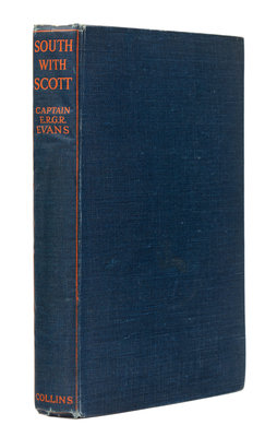 8vo (222 x 140 mm). Frontispiece portrait, 3 folding maps, folding diagram. Publisher's red-lettered blue cloth (cloth slightly bubbled). Provenance: Publisher's review copy (publisher's slip and blind stamp).FIRST EDITION, FIRST ISSUE, A VERY RARE PUBLISHER'S REVIEW COPY, with publisher's review slip tipped to front free endpaper and blind stamp to title-page. Evans's memoir of Scott's triumph, reflecting the hero status Scott had attained by the close of World War I. Conrad, p. 176; Rosove 117.A1 (very scarce, and noting that it is unlikely that more than 20 review copies were circulated of this first issue); Spence 432; Taurus 83 (second impression).
