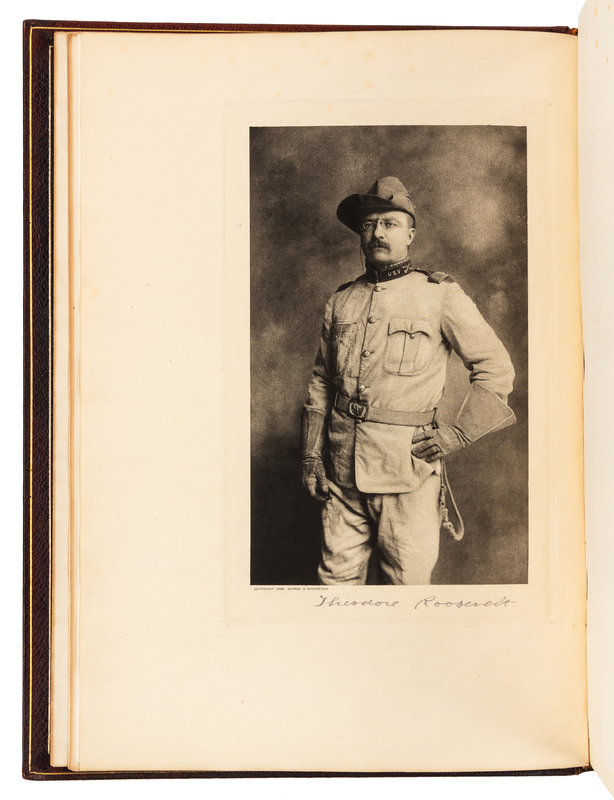 4to (278 x 185 mm). Photogravure portrait frontispiece, 55 plates by Remington, Frost, Beard, and others. Publisher's green morocco (spine slightly faded to brown, minor wear to joints and extremities). LIMITED EDITION, number 122 of 1000 copies SIGNED BY ROOSEVELT below his portrait on the frontispiece and signed by the publisher.