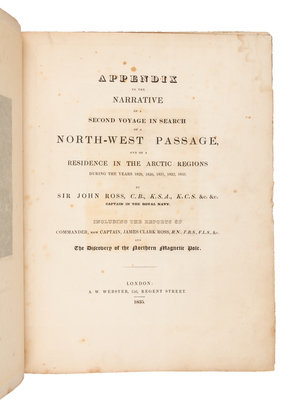 ROSS, John, Sir (1777-1856). Appendix to the Narrative of a Second Voyage in Search of a North-West Passage, and of a residence in the Arctic Regions during the years 1829, 1830, 1831, 1832, 1833. London: A. W. Webster, 1835.