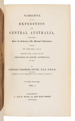 STURT, Charles, Captain (1795-1869). Narrative of an Expedition into Central Australia... Together with a notice of the Province of South Australia. London: T. and W. Boone, 1849.