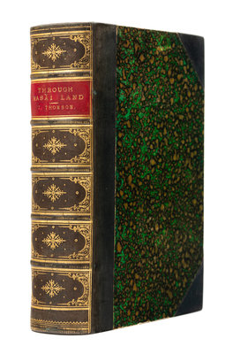 8vo (214 x 135 mm). Engraved frontispiece, 2 colored lithographed folding maps, 14 wood-engraved plates. Contemporary half calf, marbled boards, spine gilt. Provenance: Colonel Frank Shuttleworth (1845-1913), English businessman (bookplate).FIRST EDITION, "ONE OF THE GREAT AFRICAN TRAVEL EPICS" (Czech). Thompson's expedition took him from the east coast of Africa to the northern shores of Lake Victoria. His route took him to the base of Mount Kilimanjaro, and he witnessed the great and varied abundance of big game, before the arrival of hunters and poachers; he discovered a new species of gazelle, which was named for him (Gazella Thomsoni). Czech, p.164.