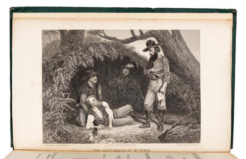 8vo (223 x 138 mm). Folding map, engraved frontispiece, engraved portrait. Publisher's green cloth gilt (recased with new endpapers, corners slightly bumped). FIRST EDITION, describing Burke's expedition for the government of Victoria, to cross the continent of Australia and reach its northwest shore. His expedition was among the most costly and tragic, and remains the most criticized, discussed and controversial, of all Australian explorations. Burke was inexperienced but Wills, his second-in-command, was a higly competent surveyor and explorer. Wills kept the only journal and record of the scientific and geographical details of the expedition. Both Wills and Burke perished on their return journey after becoming the first Europeans to cross the Australian continent from north to south. Ferguson 18622.