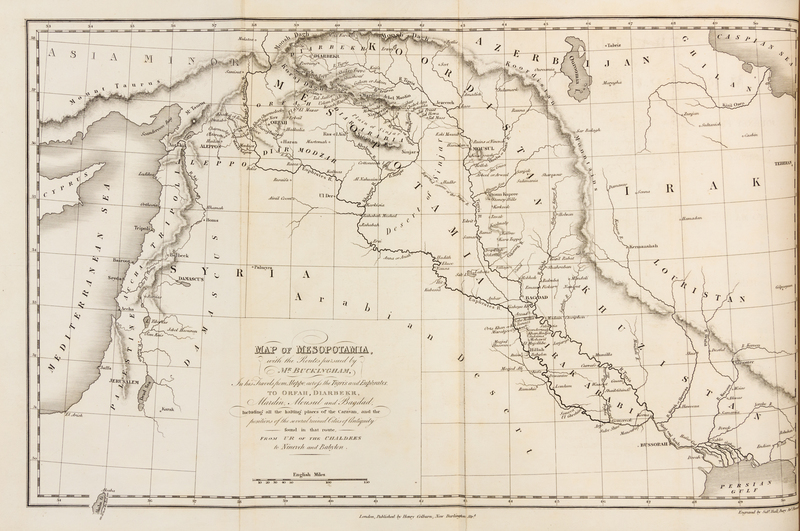BUCKINGHAM, James Silk (1786-1855). Travels in Mesopotamia. Including a Journey from Aleppo, Across the Euphrates to Orfah... London: Henry Colburn, 1827.