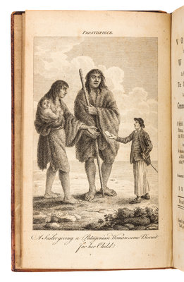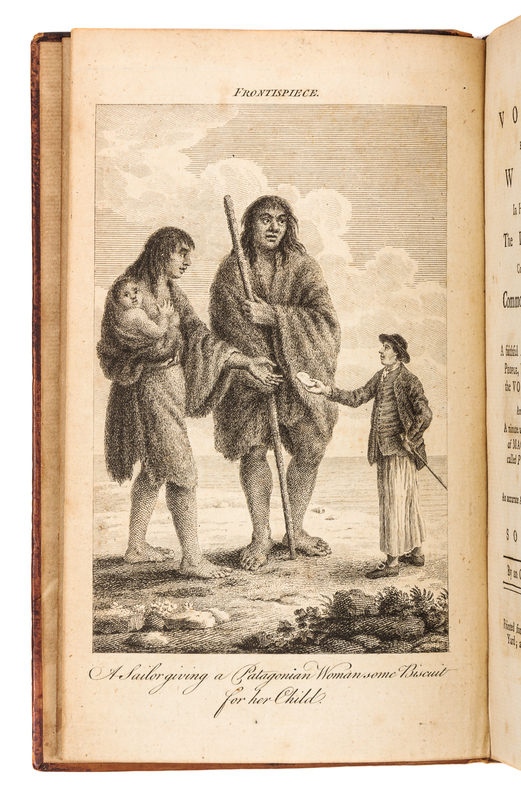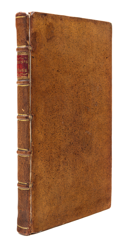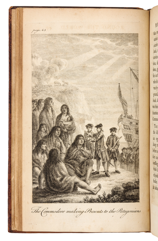 8vo (209 x 125 mm). 3 engraved plates. (Slight offsetting and browning to plates, occasional minor spotting.) Contemporary speckled calf gilt, spine gilt (front hinge cracked). Provenance: Richard Croftes (armorial bookplate). FIRST EDITION of the first printed account of the voyage of the Dolphin, which left Plymouth in July 1764 to travel and explore the South Seas. This Admiralty circumnavigation was ostensibly for the East Indies but its true object was discovery in the South Seas with instruction to Byron, its commander, to further investigate New Albion on the northwest American coast. The voyage proved to be relatively uneventful, and the Dolphin, which was the first Royal Naval vessel to be sheathed in copper, returned to England in May 1766. This work is generally credited to the ship's officer Charles Clerke, and precedes the official Admiralty account of 1773 as edited by John Hawkesworth. Borba de Moraes I:138; Hill, p.310; Sabin 9732; Spence 237.