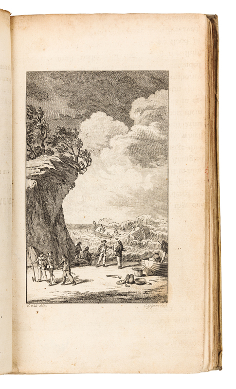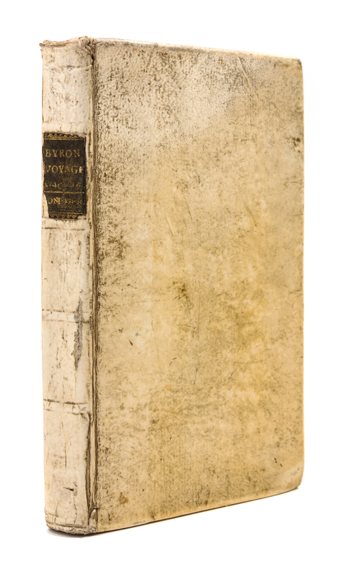 8vo (212 x 133 mm). Engraved frontispiece. Contemporary vellum, black calf label gilt (upper hinge tightened, lacking front free endpaper). Provenance: Joseph Smith (bookplate); George Slater, Arkham Parsonage (bookplate). FIRST EDITION. Byron was a midshipman aboard the Wager, one of Anson's fleet, who remained with Captain Cheap after the mutiny led by Bulkeley and Cummins (see lot 27). The survivors were tended by the local indigenous population, before being discovered by the Spanish. "This narrative supplied Byron's grandson, the poet Lord Byron (1788-1824), with many particulars for the shipwreck in Canto II of Don Juan" (Hill). "One of the most thrilling accounts in the language" (Sabin). Hill 232; Sabin 9730.