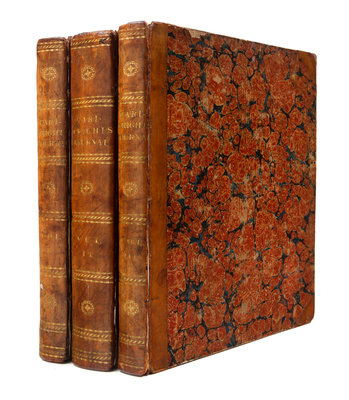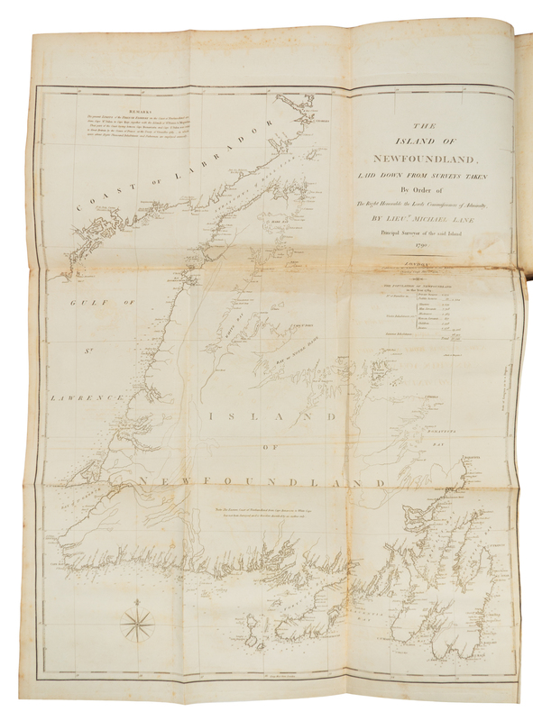 3 volumes, 4to (290 x 233 mm). Engraved frontispiece portrait, 3 engraved folding maps (one with offsetting, tear to gutter, and darkening to edge, one reinforced at fold). (Some marginal foxing, heaviest to portrait, some offsetting to title-page.) Contemporary half calf, marbled boards (a few hinges reinforced). FIRST EDITION, LARGE-PAPER COPY. After early military service as aide-de-camp to the Marquis of Granby, Cartwright was sent to Labrador by Bristol merchants to trade with the Inuit. The present account describes six journeys he made to both Labrador and Newfoundland: hunting, trapping and trading. On one of his return trips to England, in December 1772, Cartwright brought with him an Inuit family of two brothers, their wives and a five year old child. Tragically, all but one of the women died of small-pox before they could return to Labrador. Cartwright eventually retired to Marnham Hall, his estate in Nottinghamshire, where he lived on until 1819. Lande 106; Sabin 11150; Staton & Tremaine 586.