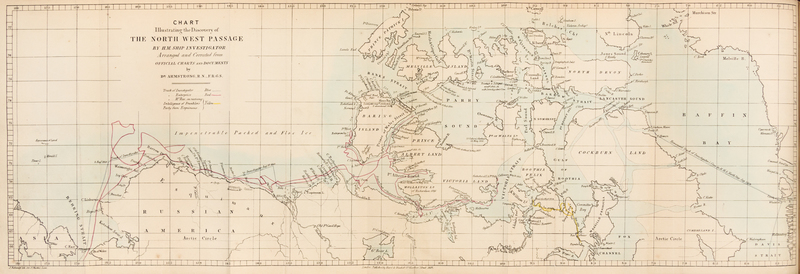 ARMSTRONG, Alexander, Sir (1818-1899). A Personal Narrative of the Discovery of the North-West Passage; with Numerous Incidents of Travel and Adventure during nearly five years' continuous service in the Arctic Regions while in search of the Expedition under Sir John Franklin. London: Hurst and Blackett, 1857.