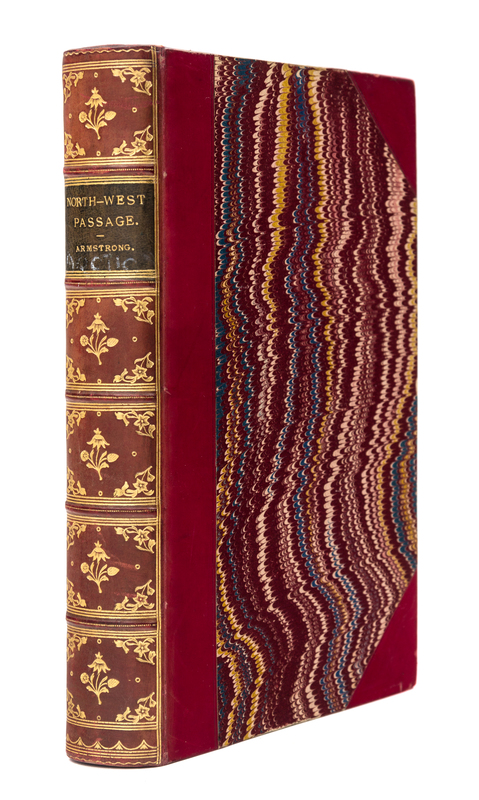 8vo (219 x 133 mm). Tinted lithographed frontispiece; lithographed folding map hand-colored in wash and outline (a few reinforcements along folds). 19th-century half red calf, marbled boards (extremities lightly rubbed). Provenance: Earl of Inniskillen (armorial bookplate). FIRST EDITION, written by the surgeon and naturalist on Robert M'Clure's Franklin search expedition aboard the HMS Investigator. For this work Armstrong was awarded the Gilbert Blane gold medal for the best journal kept by surgeons in the Royal Navy. Arctic Bibliography 682; Chavanne 1540; Hill 34; Sabin 2017; TPL 3408.