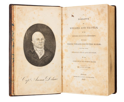 8vo (220 x 127 mm). Engraved frontispiece portrait, additional engraved portrait, engraved folding chart. (Minor foxing to text and plates.) Contemporary tree calf gilt (joints very skillfully restored).FIRST EDITION. Between 1790 and 1807, Delano, an American mariner and author from Massachusetts, made several voyages to various parts of the Pacific including Hawaii, Palau, the Galapagos Islands, Australia, and Canton. His travelogue describes the various cultures he encountered and also provides a unique account of the Bounty and Captain Bligh, including an early map of Pitcairn Island. Herman Melville's short story, "Benito Cereno" is taken from Delano's adventure seizing a Spanish ship that had been taken over by the slaves it was transporting. Ferguson 673; Forbes 463; Hill 463; Howes D-233; Sabin 19349. A FINE COPY.