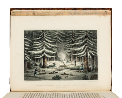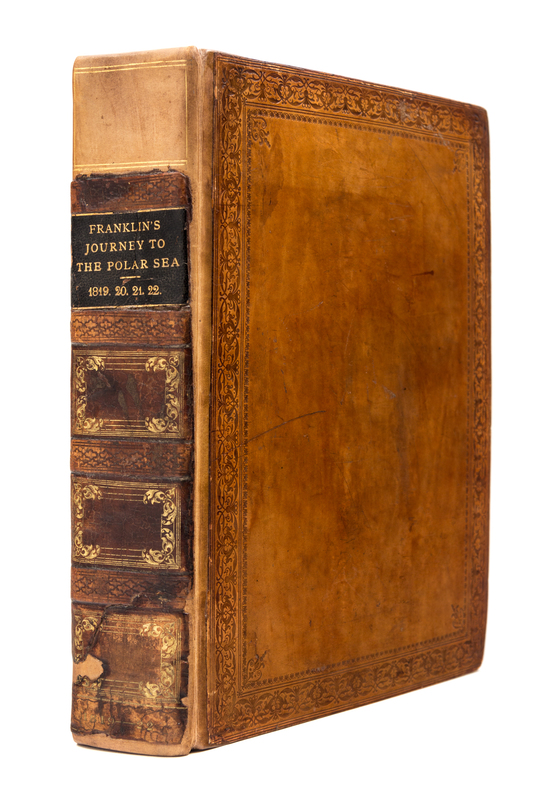 4to (270 x 212 mm). 4 engraved folding maps, 30 engraved plates (10 hand-colored). Contemporary tan polished calf gilt (rebacked preserving portions of original backstrip and endpapers).FIRST EDITION, FIRST ISSUE (with text ending on p.768), describing Sir John Franklin's first voyage to explore the north coast of the American continent east of the Coppermine River. Covering 5,500 miles and lasting for three years, the journey was one of unimaginable hardship, with many men in Franklin's party dying of starvation, exposure, and murder. Franklin returned to London in 1822 a hero, and this narrative at once became a classic of travel literature. Abbey Travel 635; Arctic Bibliography 5194; Hill 635; Peel 80; Lande 1181; Sabin 25624; TPL 1248.