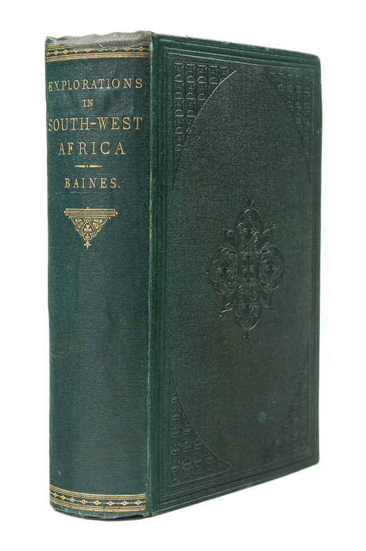 BAINES, Thomas (1822-1875). Explorations in South-West Africa. Being an account of a journey in the years 1861 and 1862 from Walvisch Bay, on the western coast, to Lake Ngami and the Victoria Falls. London: Longman, Green, et al, 1864.