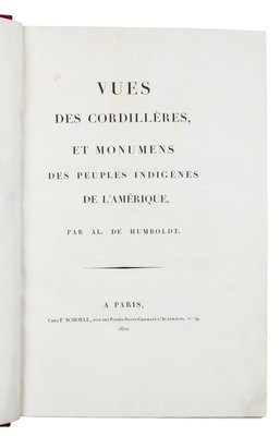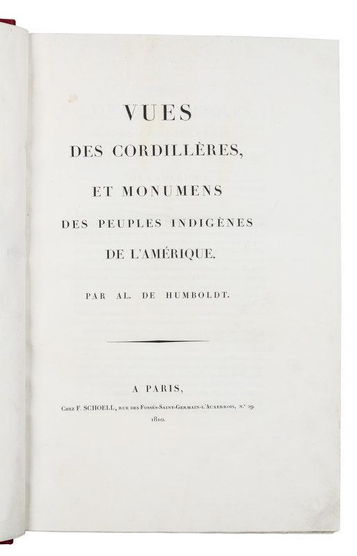 HUMBOLDT, Alexander von, (1769-1859) and Aime J. A. BONPLAND (1773-1858). Vues des Cordillres, et monumens des peuples indignes de l'Amrique. Paris: Chez F. Schoell [de l'Imprimerie de J.H. Stne], 1810.
