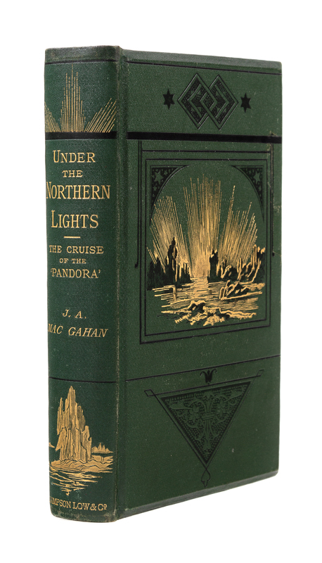 8vo. With folding route map & 7 engraved plates. (Some light spotting to first and last few leaves.) Original publisher's pictorial green cloth gilt. Provenance: James Farmer (signature); Henry D. and Mary J. Couchman (bookplate).FIRST EDITION. In 1875, the American journalist MacGahan travelled with British explorer Sir Allan William Young on his steam yacht HMS Pandora on an expedition to try to find the Northwest Passage from the Atlantic to the Pacific. The expedition got as far as Peel Sound in the Canadian Arctic before it met pack ice and was forced to return. The book also includes an earlier account of Young's earlier travels on the McClintock Expedition of 1857-59 in the 'Fox', on which he made an 800-mile sledge journey (the first printed account of this journey). Arctic Bibliography 10616. A Fine Copy. RARE.