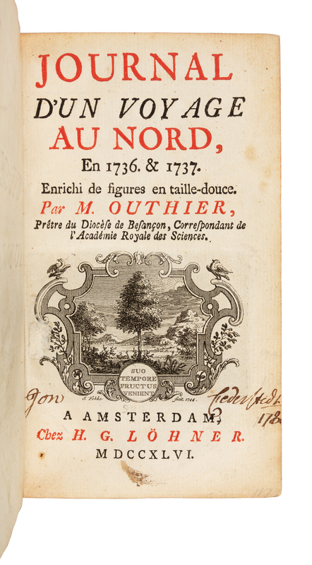 OUTHIER, Reginald (1694-1774). Journal d'un Voyage au Nord, en 1736 et 1737. Amsterdam: Chez H. G. Lohner, 1746.