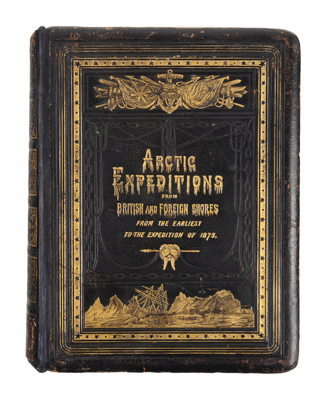 4to. With 2 chromolithographic folding maps & 24 lithographic plates (2 colored). (A few mostly marginal spots to a few leaves.) Publisher's black embossed and decorated morocco gilt (rebacked preserving original spine, endpapers renewed, corners restored). Third edition, first published in Edinburgh between 1875 and 1877, describing the voyages of Franklin, Ross, Parry, and Nares as well as the search for Franklin. Arctic Bibliography 16282; Sabin 82419 (first edition).