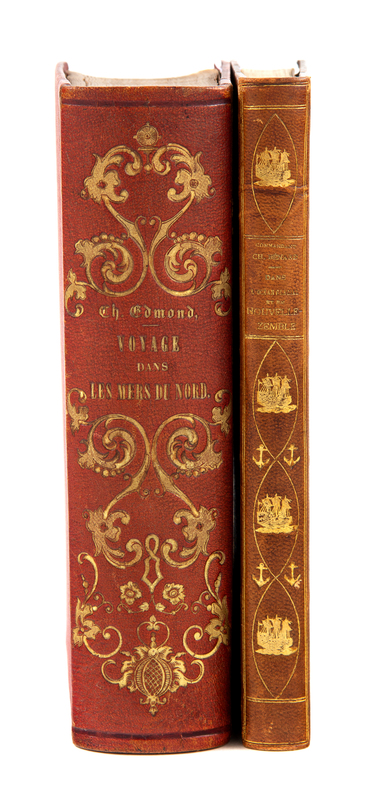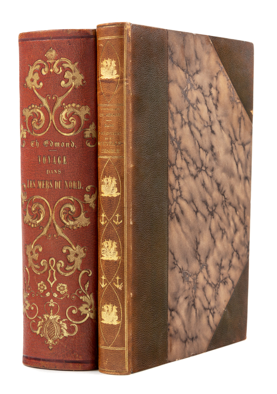 [With:]BNARD, Charles (1867-1931). Dans l'Ocean Glacial et en Nouvelle-Zemble. (Avril-Septembre 1908). Paris: Albin Michel, [1909]. 8vo. 2 maps, numerous plates. Contemporary French half brown morocco, marbled boards. FIRST EDITION.