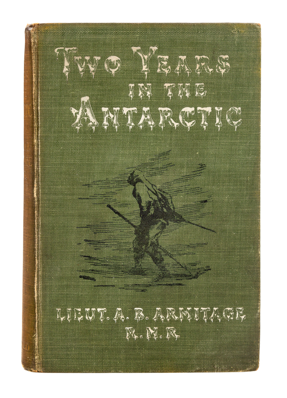 8vo. With folding map, 16 photographic plates, and text illustrations. (Folding map with a few short tears repaired verso, spotting to a few leaves, Original publisher's green pictorial cloth (spine soiled; slight dampstaining to front cover). Provenance: J. H. Donaldson (bookplate). FIRST EDITION. Armitage sailed as navigator and Second in Command under Scott on the Discovery Expedition of 1901-04 to Antarctica. His account, which exposes some of the lighter and more anecdotal sides of the expedition, often comments on the men's characters. One of the few first-hand accounts of Scott's Discovery expedition to have been separately published. Conrad, p 110; Renard 50; Rosove 17.A1.c; Spence 67; Taurus 43.