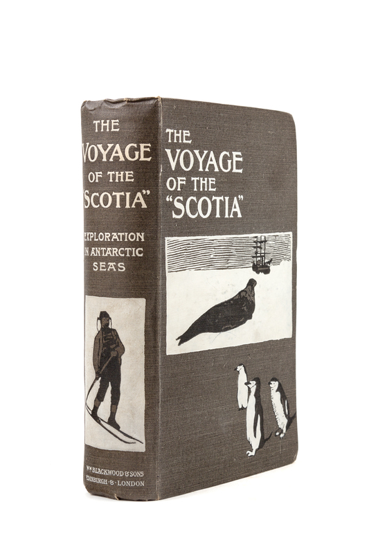8vo. With large folding map, 2 further maps (1 folding and in color), and 59 photographic plates. (Pale foxing.) Original publisher's grey cloth (corners slightly bumped). FIRST EDITION, PRESENTATION COPY, inscribed by the Expedition leader, William S. Bruce on the half-title: "With compliments Wm. S. Bruce 11.11.18." This work is the primary narrative account of the 'Scotia' and the Scottish National Antarctic Expedition of 1902-04, planned and led by Bruce. He had declined the opportunity of accompanying Scott's Discovery expedition as a naturalist, and instead embarked upon this Scottish-financed voyage to the Weddell Sea. As Taurus notes, the underfunded expedition became frozen over the winter, but nonetheless Bruce discovered Coats Land, and undertook the first thorough study of penguins. Rosove 50; Spence 193; Taurus Collection 51. A very fine copy.