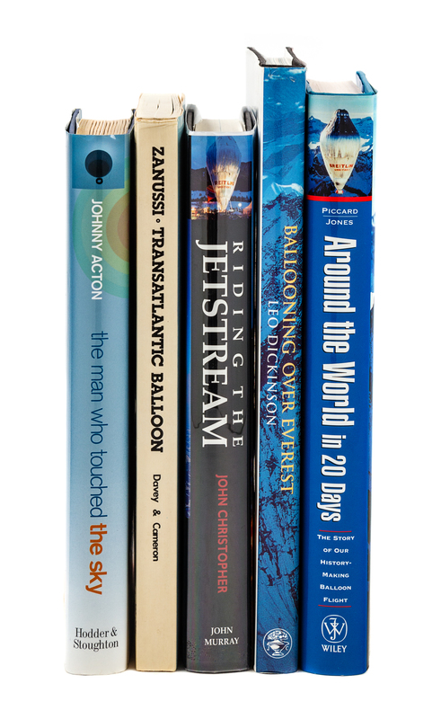 ACTON, Johnny. The Man Who Touched the Sky. London: 2002. -- DAVY, Christopher, Don CAMERON, et al. Zanussi: Transatlantic Balloon. Channel Islands: Sport Sponsorship, 1982. -- CHRISTOPHER, John. Riding the Jetstream. The Story of Ballooning: From Montgolfier to Breitling. London: 2001. -- DICKINSON, Leo. Ballooning Over Everest. London: 1993. -- PICCARD, Bertrand and Brian JONES. Around the World in 20 Days. The Story of Our History-Making Balloon Flight. New York: 1999. -- And 8 others. Together, 13 works in 13 volumes, most FIRST EDITION, most in original publisher's bindings, condition generally fine, complete list available on request.