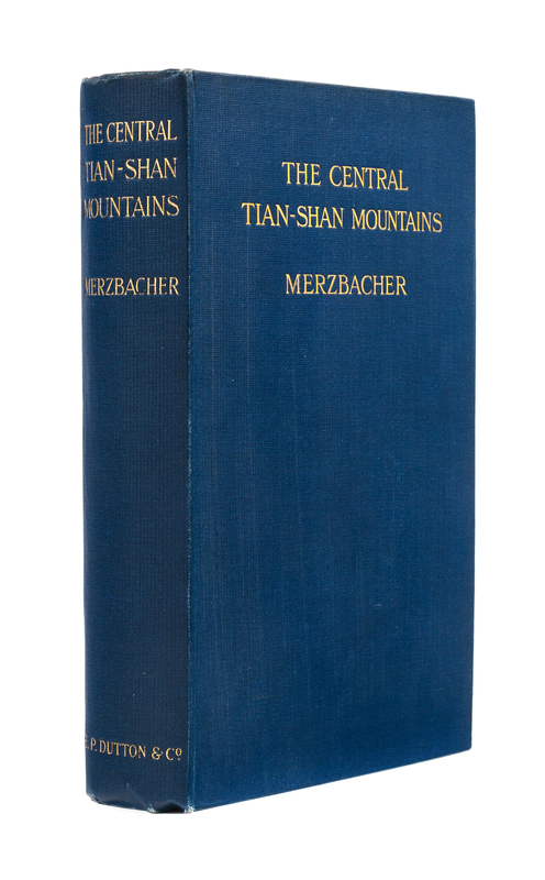 8vo. With folding color-printed map & 20 plates. Original publisher's blue cloth. Provenance: Acton and Ludlow (gift inscription, 1906). FIRST EDITION, American issue (with cancel title-page, printed & bound in England for U.S. distribution). Merzbacher's second scientific expedition into the Tian Shan of Russian and Chinese Turkestan, and his only work in English. Neate M85; Yakushi (1994) M325. A very fine copy.
